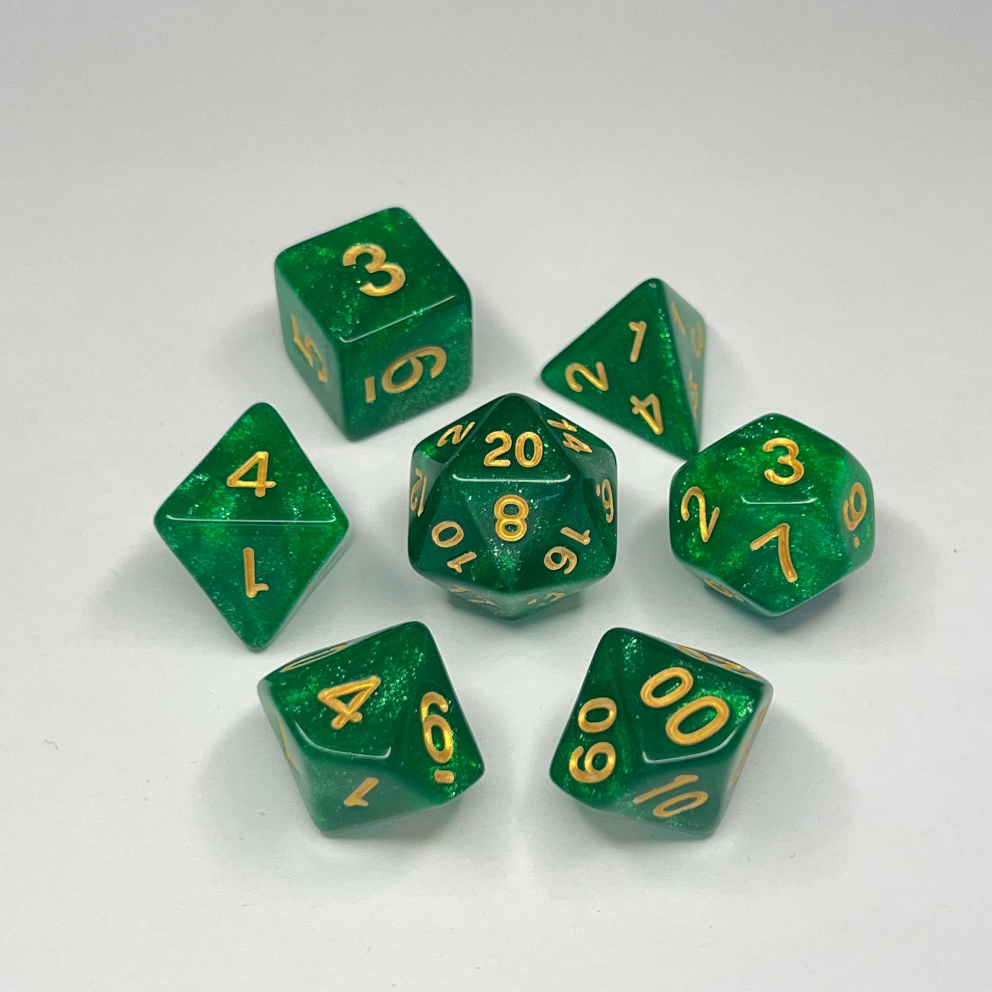 Polyhedral Dice Set - Gold - Glitter - Green